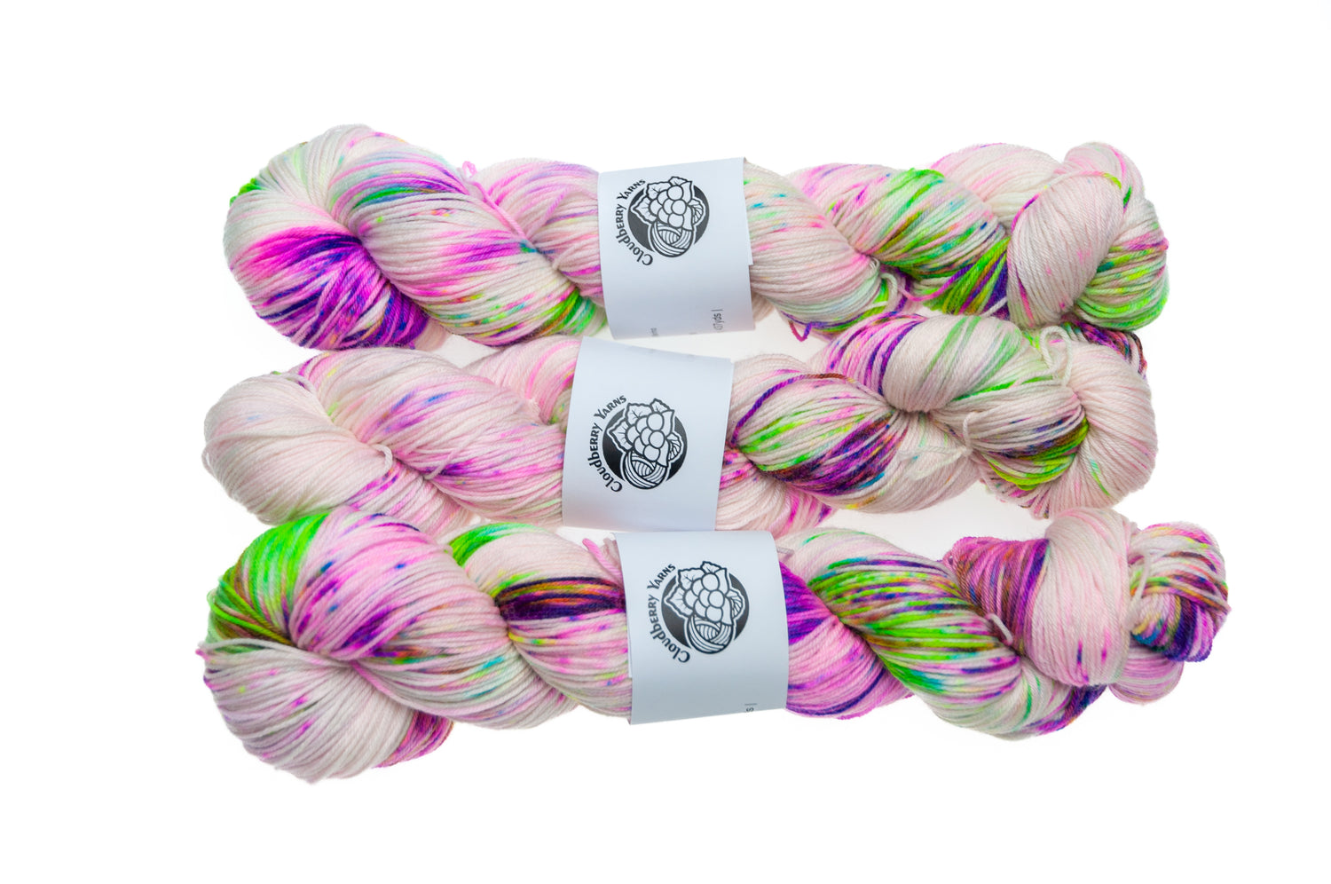 Monet Flowers is part of a new line of speckled yarns. This combination of purple, pink, and green gives a delightful impression of spring flowers. It's perfect for that splash of color to combat the winter blues!
